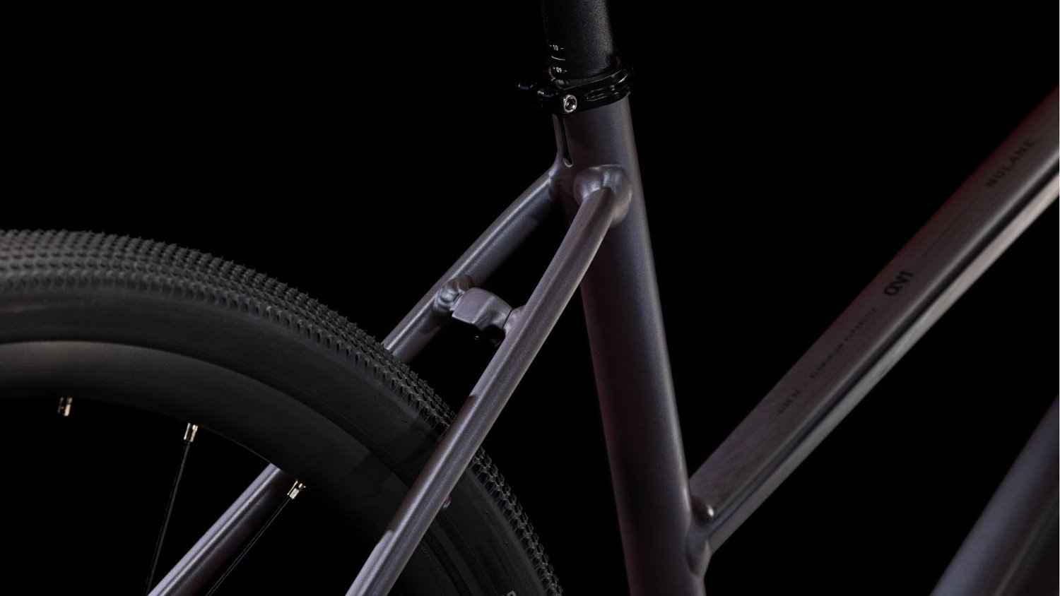 Der Trapezrahmen des vielseitigen Nulane sieht vielleicht unspektakulär aus, dabei ist er in Sachen Komfort und einfaches Handling kaum zu toppen – leichtes Auf- und Absteigen inklusive. Doch das Chassis überzeugt auch beim Blick auf die Details, beispielsweise die superleichten, doppelt konifizierten Aluminiumrohre und die Vollcarbongabel – beides Garanten für geringes Gewicht. Außerdem gibt es Montagepunkte zum unkomplizierten Nachrüsten von Schutzblechen und Gepäckträgern an der Front und am Heck. Technischer Kniff: Dass wir vorne wie hinten eine Steckachse verbaut haben, sorgt für ein sicheres, zuverlässiges Handling, egal ob mit Gepäck an Bord oder ohne.