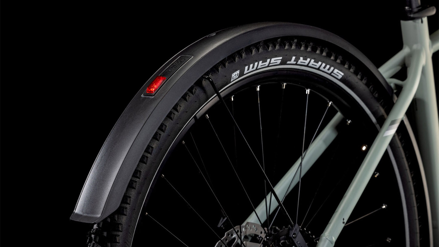 Womit der Rahmen des Nuride Hybrid Performance als Erstes begeistert, ist seine tolle Optik. Denn CUBE hat den leistungsstarken Bosch Performance Motor mit Bosch Smart System und 500 Wh PowerTube Akku so formschön ins Design integriert, dass sie kaum auffallen. Was aber auffällt, ist der tolle Support im Vorwärts. Es kommt aber noch besser: Das Efficient Comfort Geometry sorgt gemeinsam mit der Federgabel mit 63 mm Federweg für ein komfortables und zugleich kontrolliertes Fahrgefühl, selbst auf ruppigen Wegen. In der Sattelklemme wurde ein praktisches Mini-Tool versteckt. Last, but not least das Zubehör – dank Beleuchtung, Seitenständer und Schutzblechen ist dieses E-Bike der perfekte Partner für sämtliche Zweiradabenteuer, egal wohin die Reise geht!