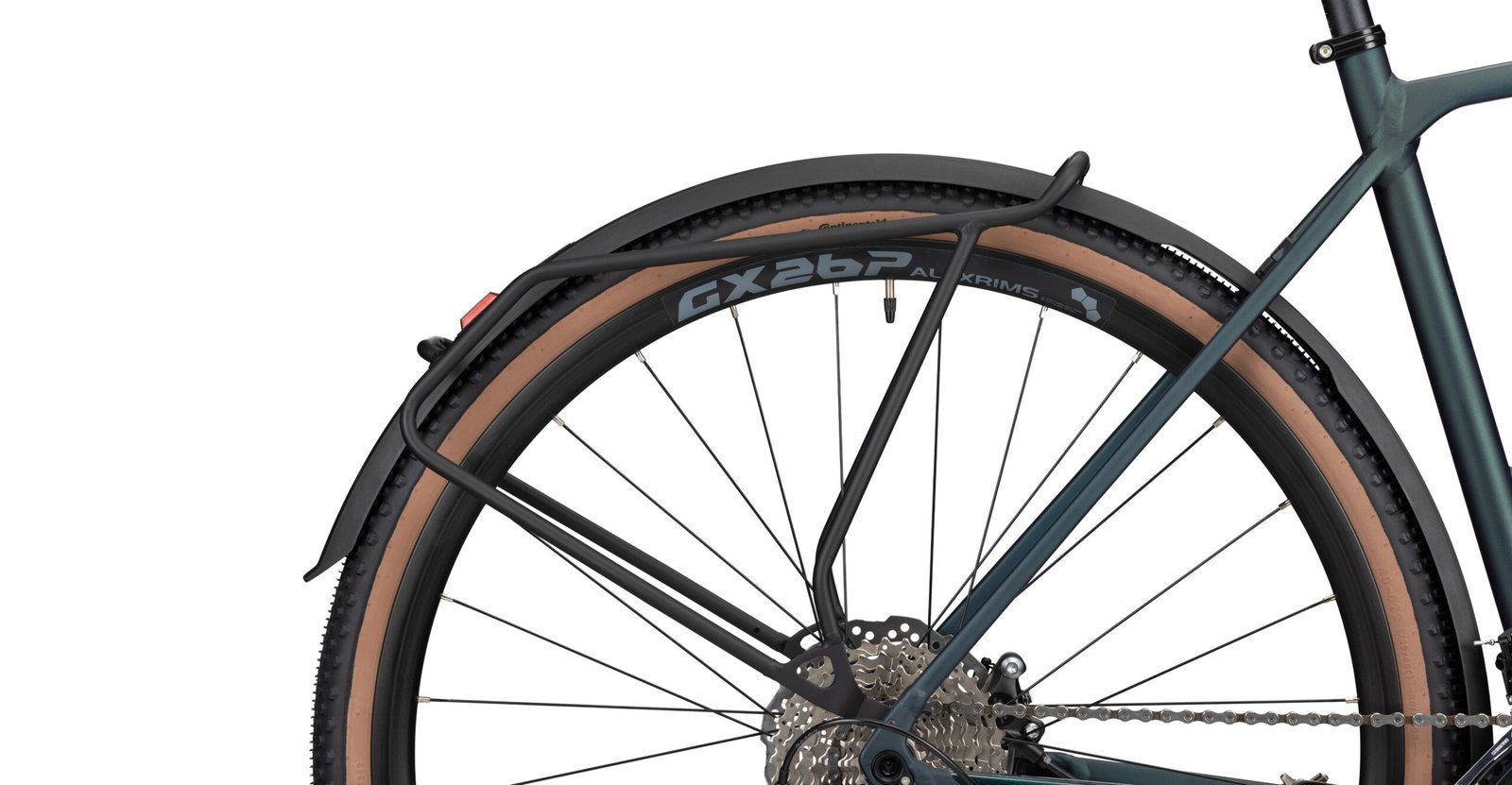 | Felgen: | Alexrims GX26P (Felgenhöhe: 26mm; Maulweite: 23mm; Tubeless ready: ✔; Tubeless Ventile: nicht enthalten; Tubeless Felgenband: 25-26mm, nicht enthalten; Tubeless Milch: nicht enthalten) |